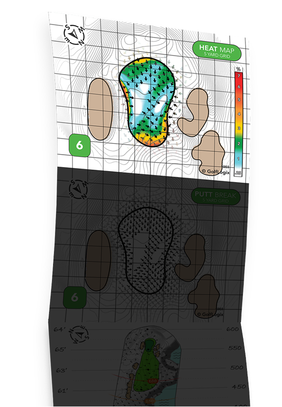 Use the Heat Map view to analyze precise green slopes and know where to aim to nail your approach shots.