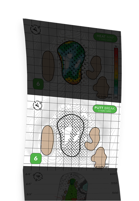Use the Heat Map view to analyze precise green slopes and know where to aim to nail your approach shots.